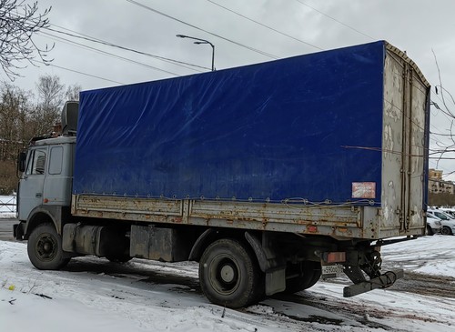 МАЗ 53366-021. Год выпуска - 2001. Технически допустимая (разрешённая) масса по ПТС, СТС - 28500 кг. Масса без нагрузки - 9200 кг. Мощность двигателя - 240 л.с., двигатель ЯМЗ-238.